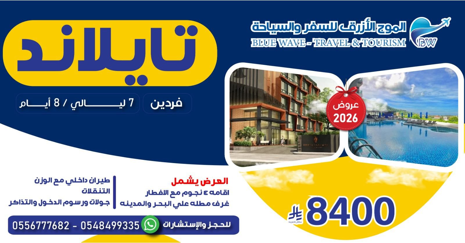 هل تحلمين بالاسترخاء على شواطئ تايلاند الساحرة أو استكشاف مدنها النابضة بالحياة؟ في عام 2026، تجعل شركة “الموج الأزرق للسفر والسياحة” حلمك حقيقة! نقدم لك باقة سياحية متكاملة للفردين، تجمع بين الرفاهية والتجربة الشاملة.