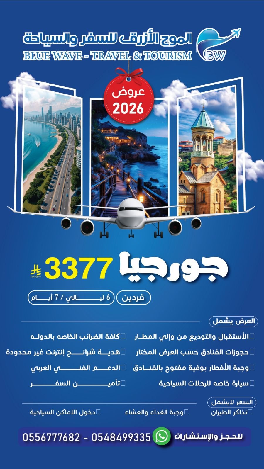 🇬🇪 جورجيا تناديك في 2026! استمتع بجمال القوقاز مع عرض “الموج الأزرق” الاستثنائي، 7 أيام لشخصين مع سيارة خاصة، إنترنت غير محدود، تأمين سفر وفنادق مع الإفطار، فريق الدعم بالعربي جاهز لخدمتك طوال الرحلة.