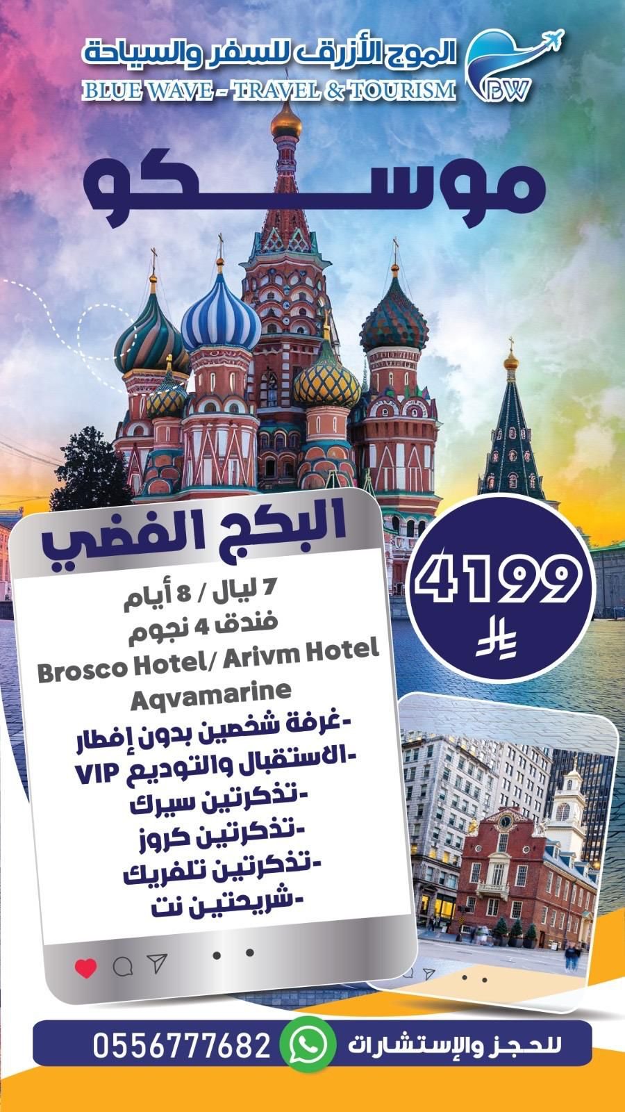 هل تحلم بزيارة الساحة الحمراء واستكشاف عظمة العمارة الروسية؟ موسكو تناديك في عام 2026 ببرنامج سياحي لا يُنسى، تقدم شركة “الموج الأزرق للسفر والسياحة” عرض “البكج الفضي” المميز، المصمم بعناية ليجمع بين الإقامة الفاخرة في قلب العاصمة وأجمل الأنشطة الترفيهية، لتجعل رحلتك تجربة استثنائية مليئة بالبهجة والإثارة.